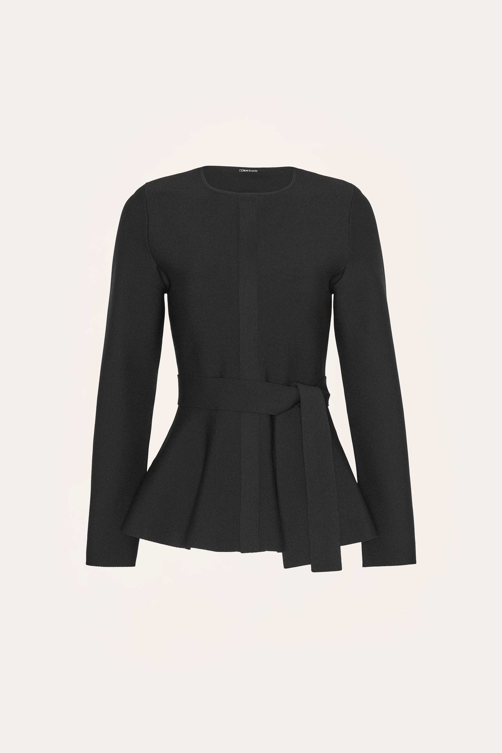 The Blair Milano Sculpt Peplum Top has a clean neckline and softly flared peplum hem, designed to define the waist while maintaining an elegant, modern silhouette.