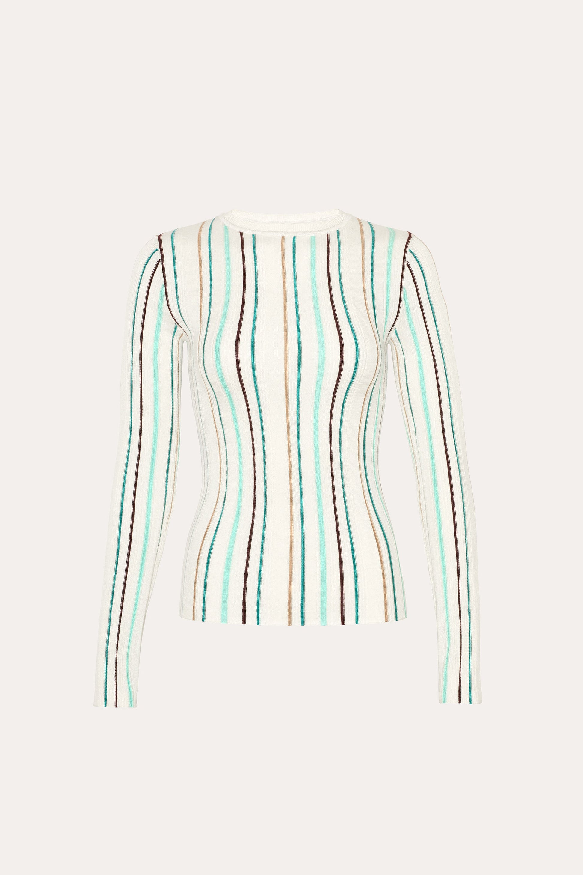 Featuring a classic crew neckline and refined stripe design, the Lucia Silk Wool Top offers an elevated take on everyday knitwear.