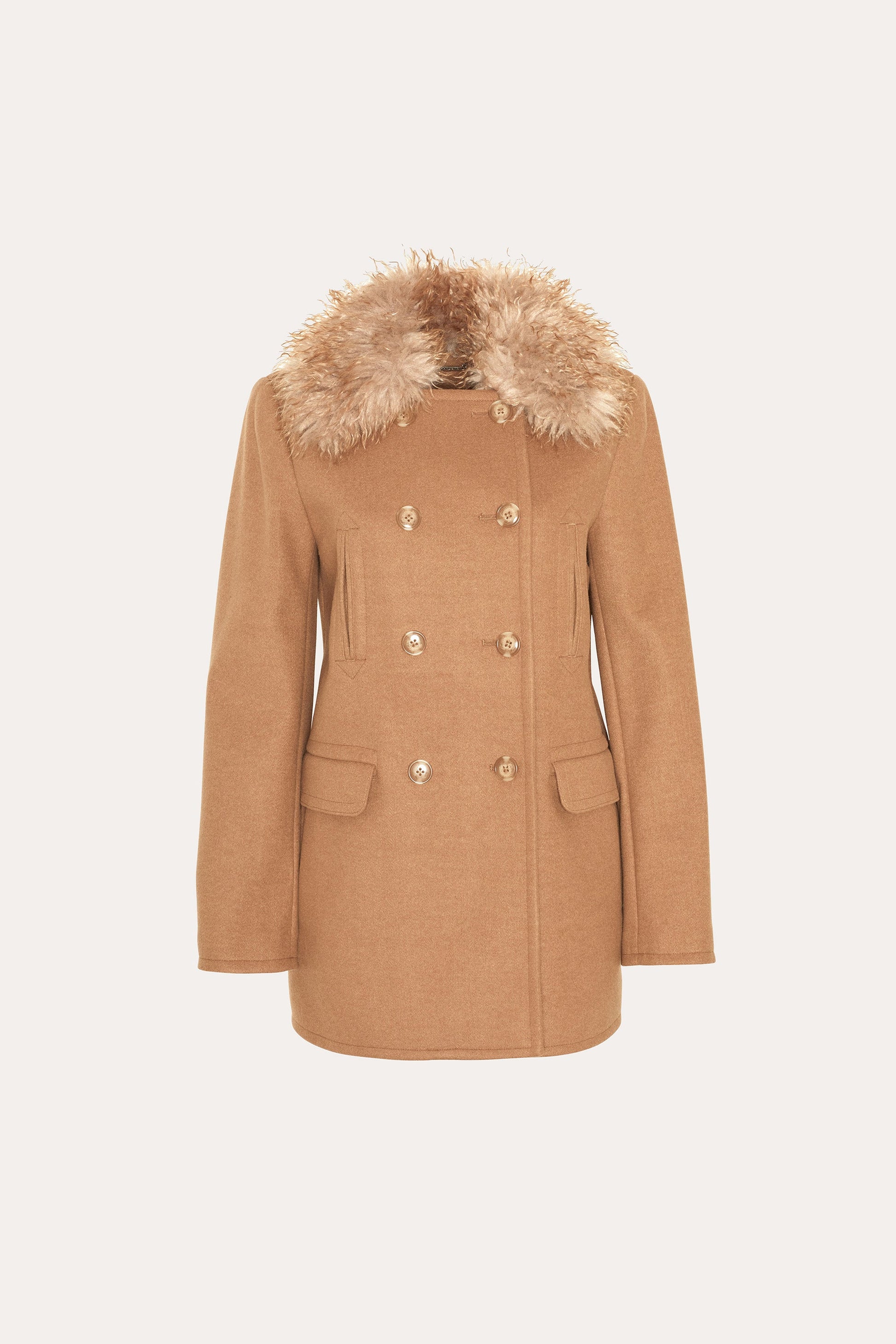 - Mid-Length Brushed Wool Blend Double Breasted Peacoat